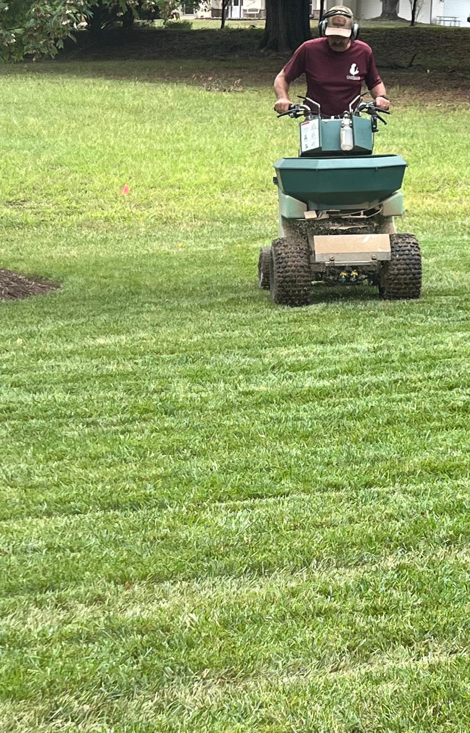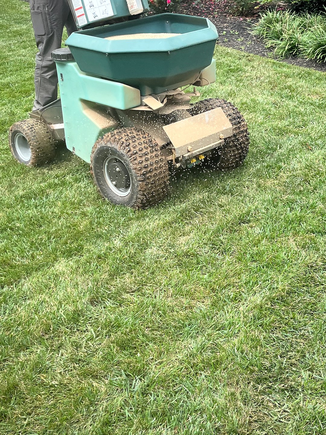 This is the season for core aerating and fescue over-seeding in Greenville, SC. We provide this service for our turf care customers. We can also do a one-time core aeration and reseeding for customers that prefer to do their own turf care program! We prefer to use a ride-on aerator and our Permagreen sprayer/spreader for these applications. Give us a call for any of your turf care needs!