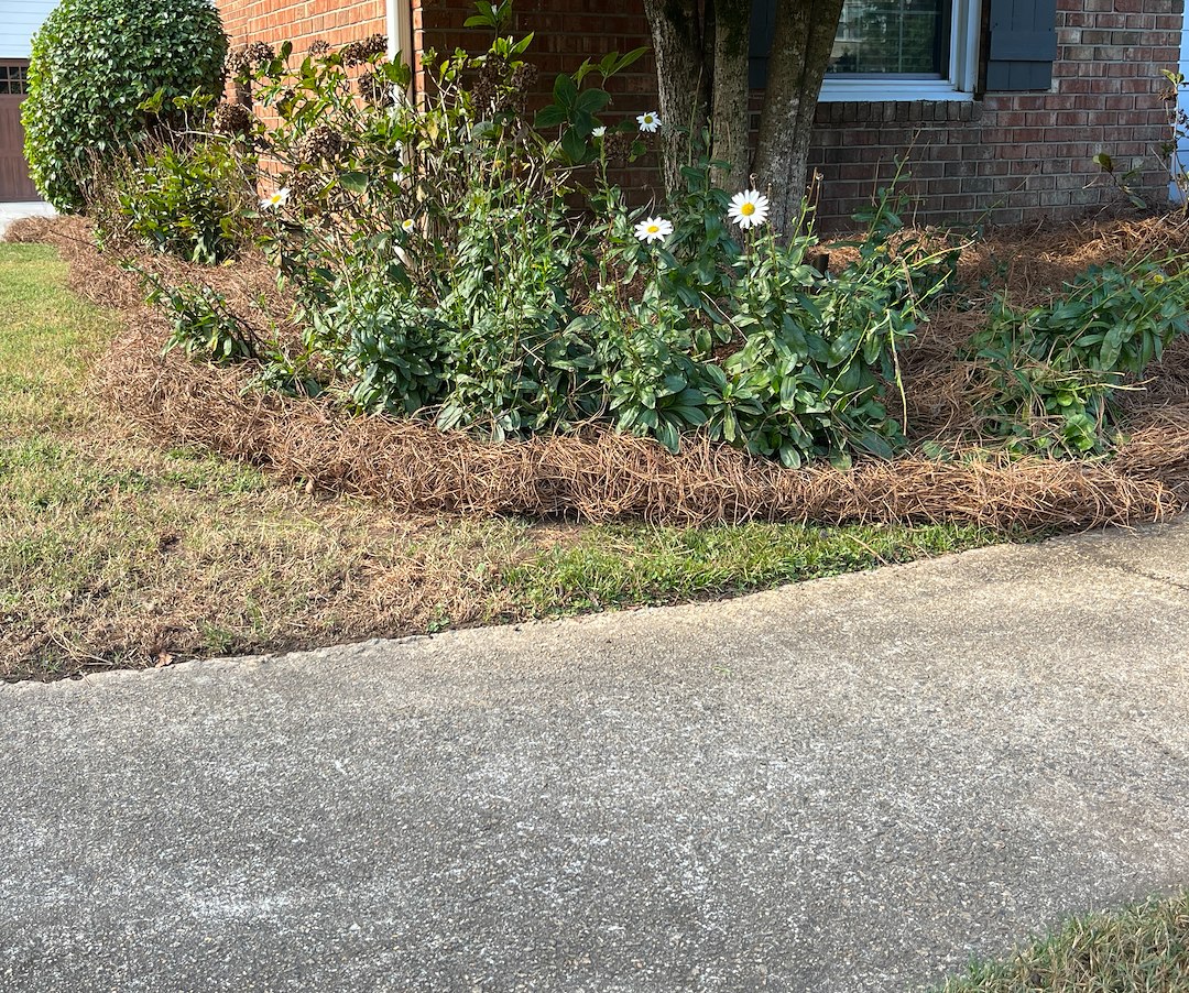 We recently did a project for a customer in Taylors, SC that involved a pine needle installation as well as a mulch installation. He wanted the property to be pristine for an upcoming party! We started with pruning the shrubs. Then, after mulching a few specified areas, we refreshed the pine needle beds to make sure the whole property looked great in time for the event!